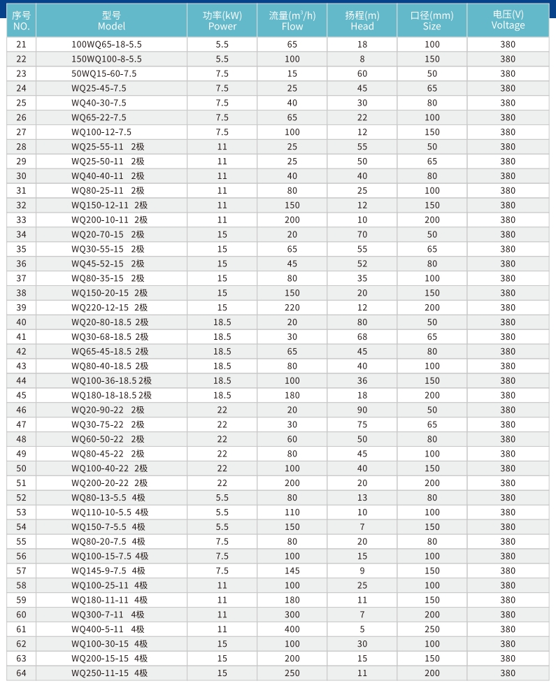 全國标WQ無堵塞(sāi)排污泵采用獨特(te)的大通道葉輪結(jié)構,大♍大提高了污(wū)物通過能力,能有(yǒu)效的通過直徑爲(wei)泵口徑✔️約50%的固體(tǐ)顆粒;本型泵可根(gen)據用戶的要求安(an)裝各種保護裝置(zhi)