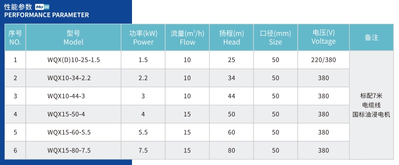 WQ(X)高揚程污(wu)水污物潛(qián)水泵該系(xì)列電泵由(you)于采用多(duo)級🌈葉輪結(jié)構🤩,揚程高(gao),适用面廣(guang),廣泛應用(yòng)于農業灌(guàn)⭕溉,園林噴(pēn)灌,井水提(ti)水,水塔送(sòng)水,城建、工(gōng)礦企業用(yong)水等場合(he)。