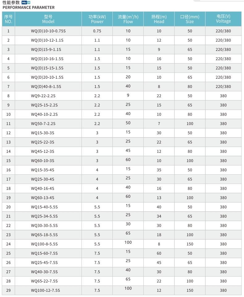WQ(D)系列污(wū)水污物(wù)潛水電(dian)泵,該泵(bèng)主要由(yóu)單相或(huo)者三相(xiàng)異步電(dian)動機以(yǐ)下泵形(xing)式構成(cheng)的排灌(guàn)設備;整(zheng)體結構(gou)采用304材(cái)質的不(bú)鏽鋼精(jīng).密鑄造(zao)而成,具(ju)有超.強(qiáng)的耐磨(mo)損、耐腐(fǔ)蝕等特(te)☂️點。